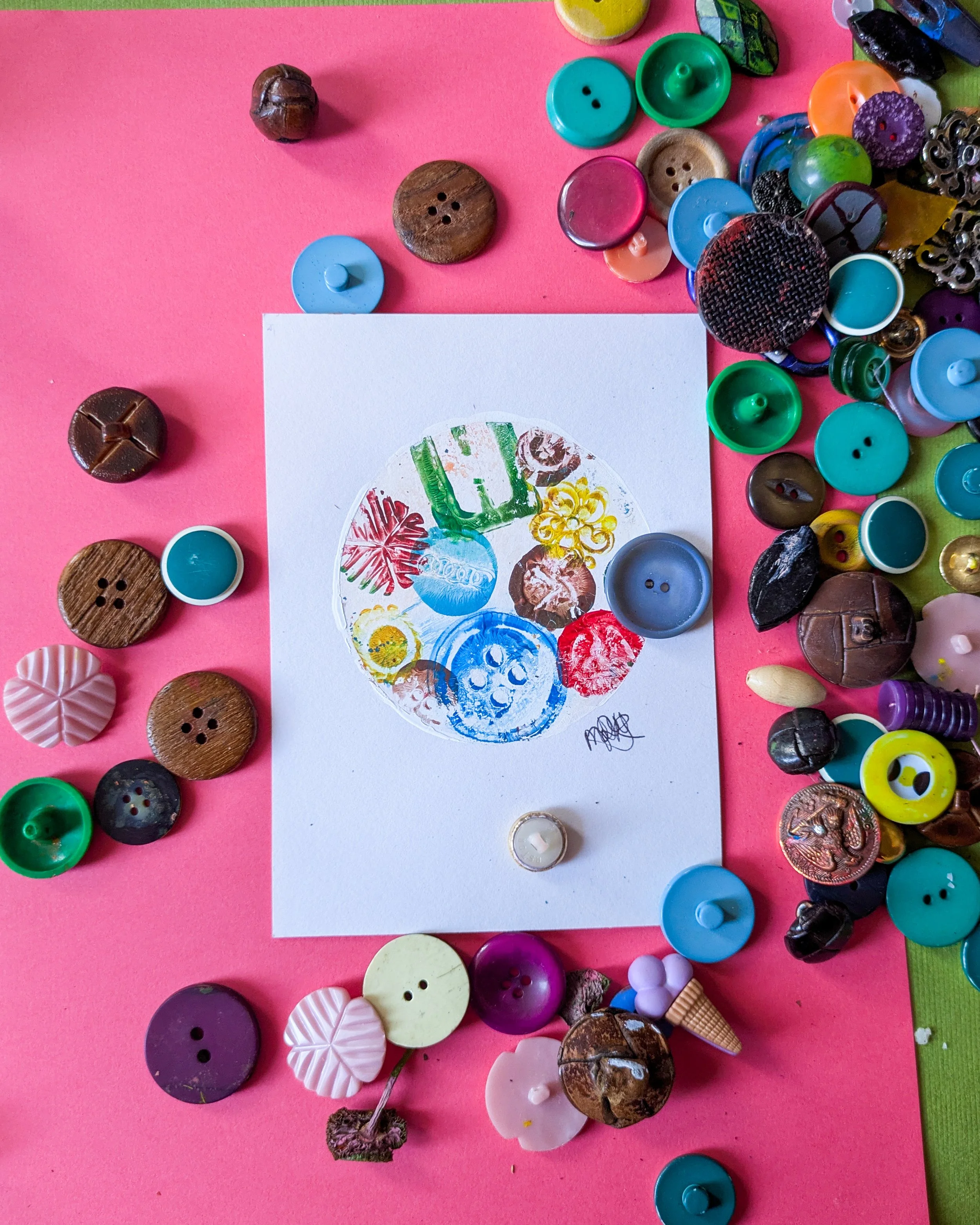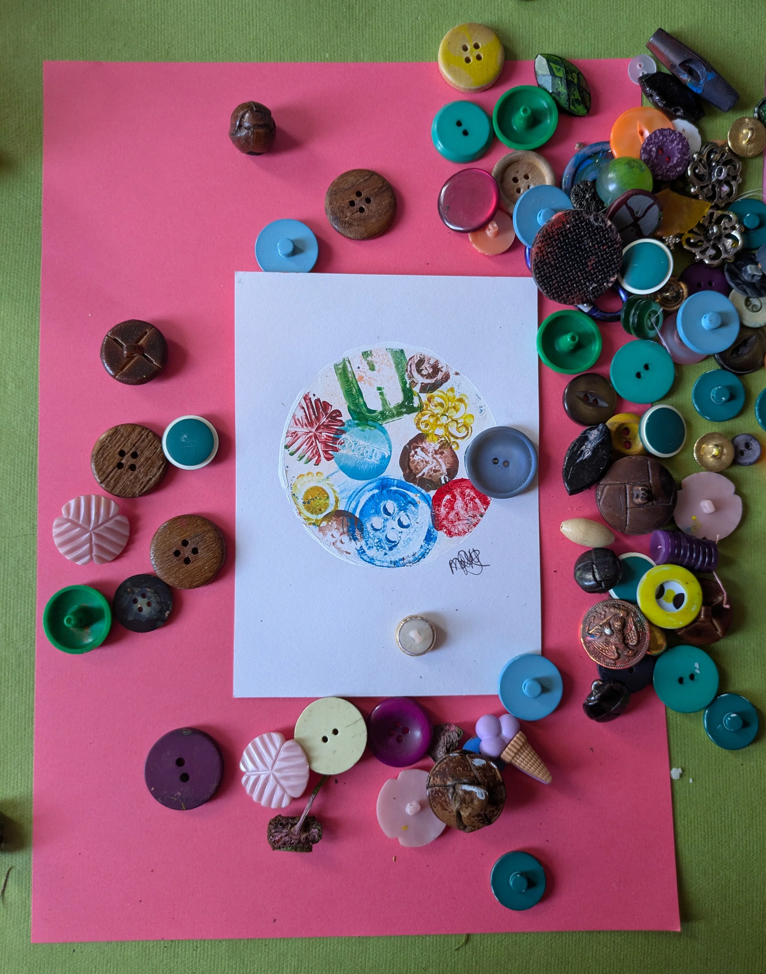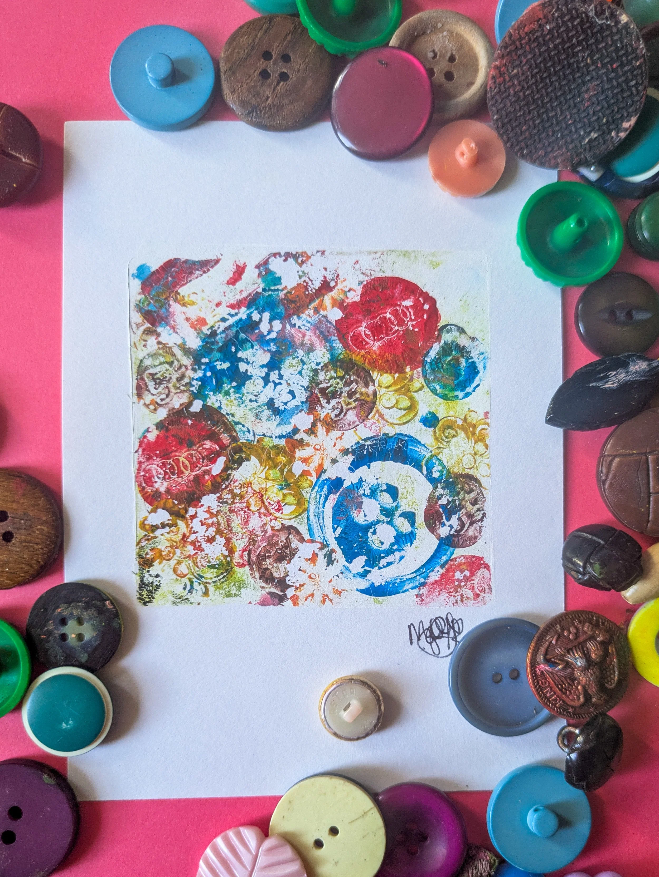 Gelli print made with buttons. On thin card.